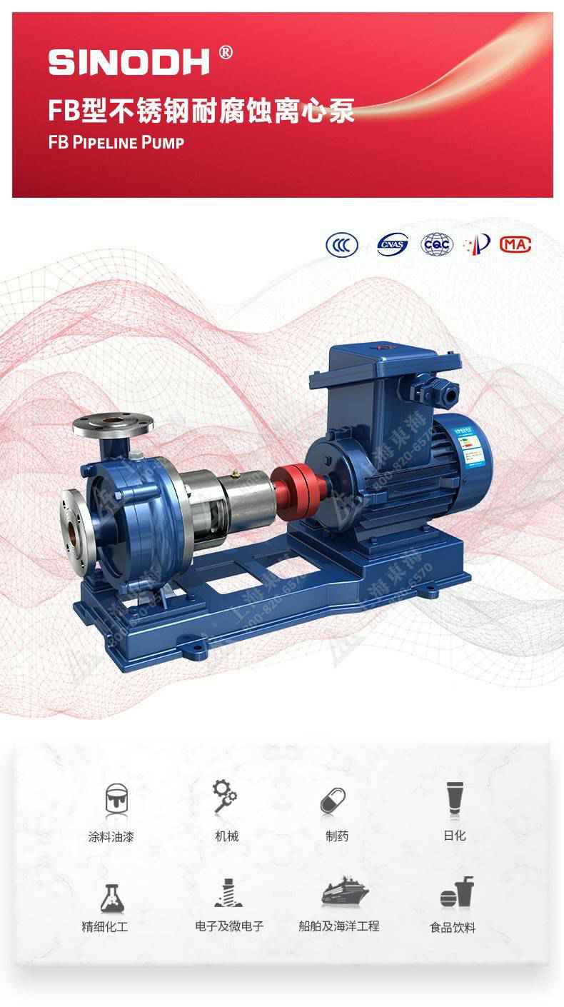 FB型不锈钢单级单吸悬臂式耐腐蚀离心泵,为华体会hth·(体育)(中国)官方网站自主研发生产。本系列产品适用于输送不含固体颗粒,有腐蚀性液体。被输送介质温度为-20℃~200℃,泵的进口压力不能大于0.2MPa,广泛用于石油、化工、冶金、合成纤维、制药、食品、酿造等工业部门,也可供工矿、企业及城市供水、排水之用。