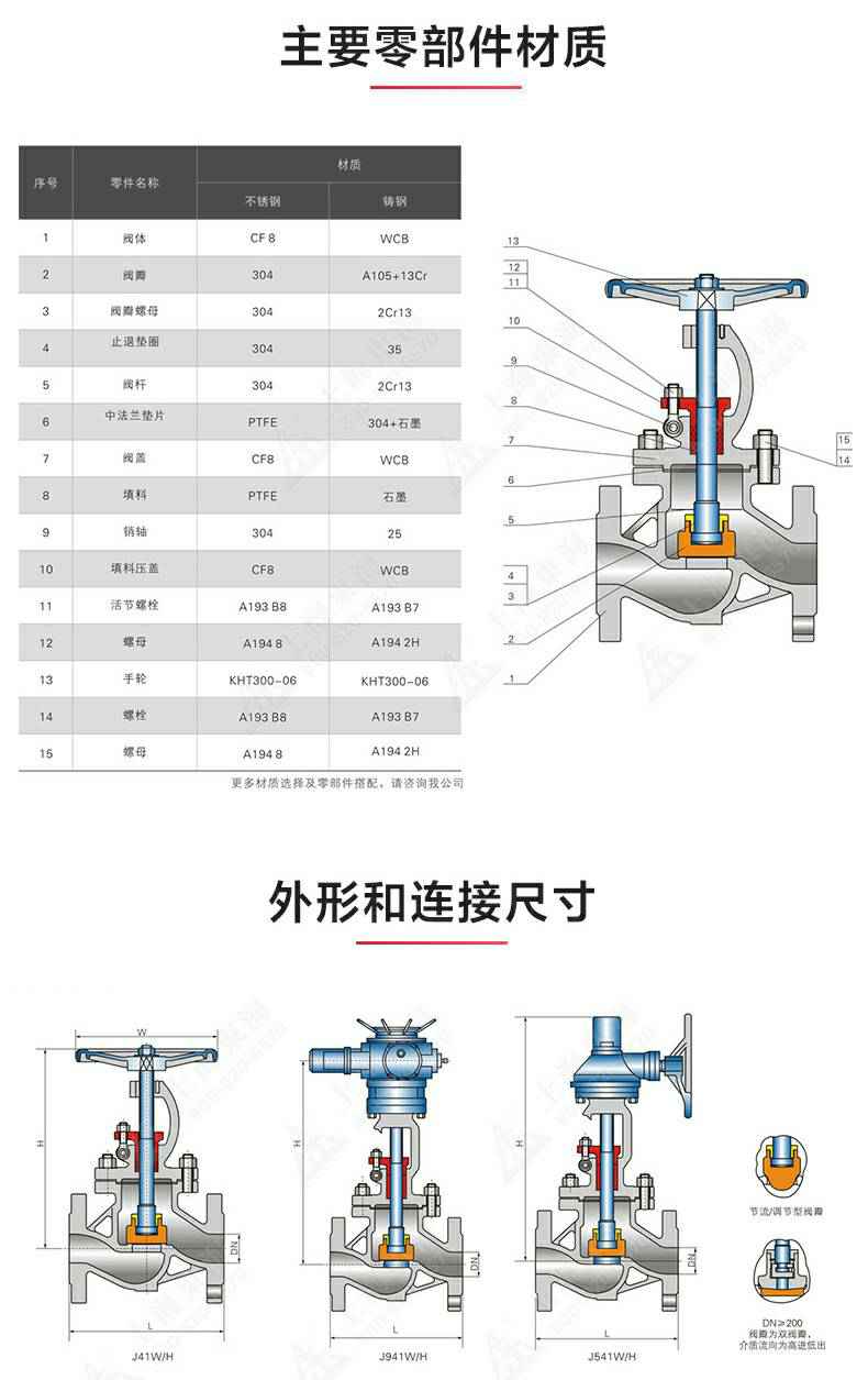 J41型国标不锈钢法兰截止阀, 为华体会hth·(体育)(中国)官方网站自主研发生产。本产品设计制造标准符合GB/T12235-89标准其启闭件是圆柱形的阀瓣,密封面呈平面或锥面,阀瓣沿流体的中心线作直线运动。国标截止阀只适用于全开和全关,一般不用来调节流量,定做时允许作调节和节流。