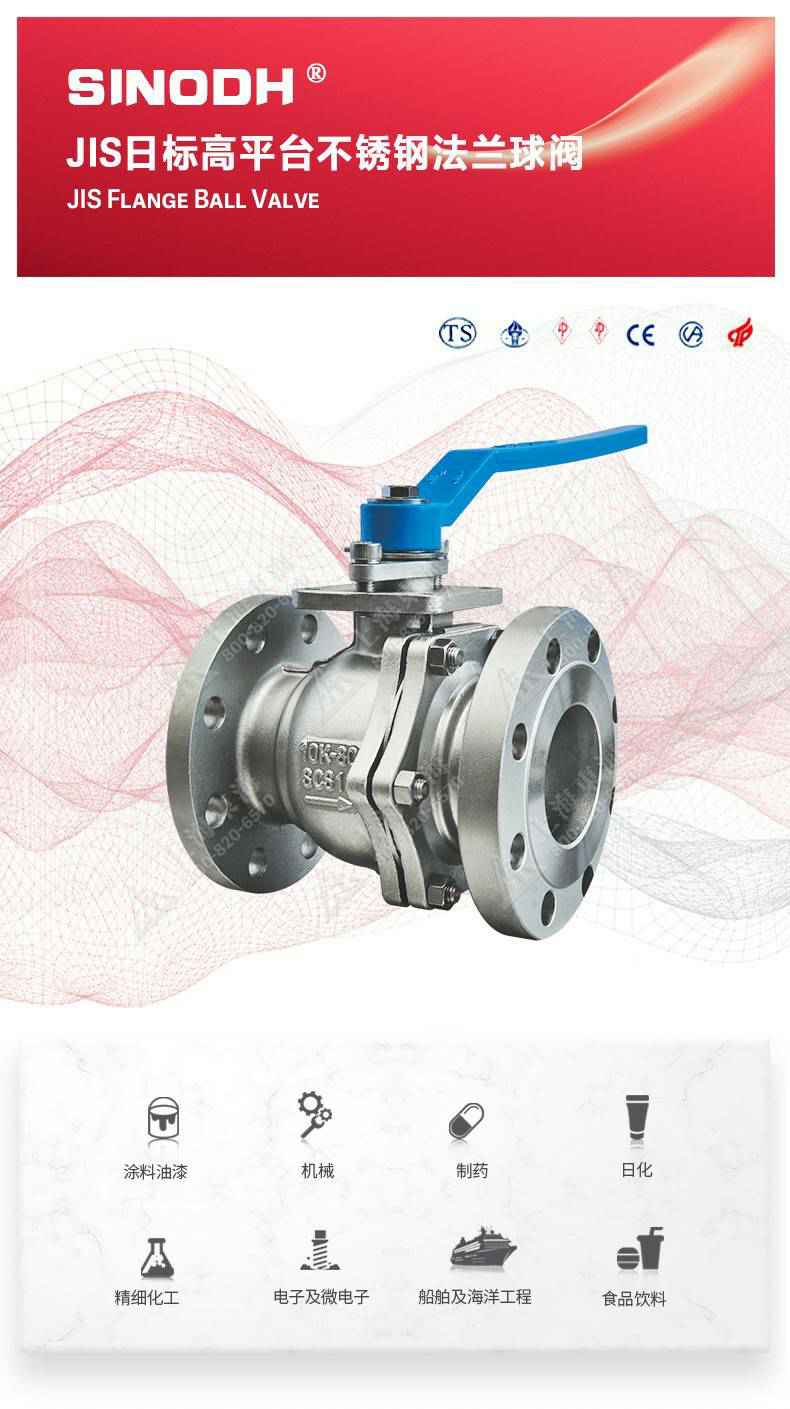 JIS日标高平台不锈钢法兰球阀,为华体会hth·(体育)(中国)官方网站自主研发生产本产品设计制造标准符合J1 SB2071标准,该产品的球体(密封件)是浮动的,在介质压力作用下,球体能产生-定的位移并紧压在出口端的密封面上,保证出口端密封。适用于水、溶剂、酸和天然气等一般工业介质,也适用于工况恶劣的介质,如氧气、过氧化氢、乙烯等介质。
