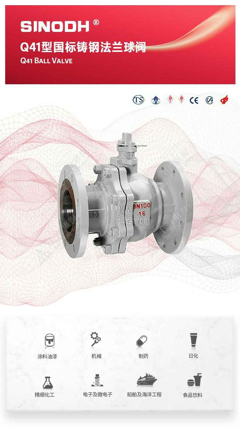 Q41型国标铸钢法兰球阀,为华体会hth·(体育)(中国)官方网站自主研发生产。本产品设计制造标准符合GB/T12237、GB/T12224标准。该产品的球体在介质压力作用下球体能产生一定的位移并紧压在出口端的密封面上,保证出口端密封。适用于水、溶剂、酸和天然气等一般工业介质也适用于工况恶劣的介质,如氧气、过氧化氢、甲烷和乙烯等介质。
